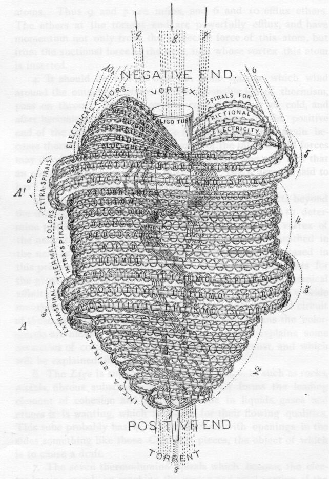 Das UrAtom (okkulte Chemie) hat auch 10 einzelne Schlaufen, die zwar nicht hintereinander liegen, aber ich vermute, das ist eine Frage der Perspektive. Beim Sonnensystem sehen wir das Ganze von innen, da können wir die vertikale Achs-Ausdehnung (Zeitachse) nicht sehen, nur (zeitlich) durchleben: Jahr für Jahr, Zyklus für Zyklus. Unser Licht wird erst spiralig aufgewickelt, bevor es uns erreicht. Deshalb 'zählen' wir so große Abstände. Wir benutzen die Zeit, um Raum zu vermessen.