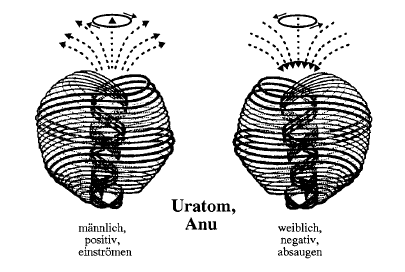 Das ist ungefähr die doppelte Elektronenmasse (1 me = 1/1836 mp). Und wenn man davon ausgeht, dass nur die weiblichen Uratome der nächsten Substruktur (astrales UrAtom) für Elektronen gehalten werden, dann bleiben also die männlichen im Metall, weil sie stabiler in unser aktuelles Universum passen (Drehung rechtsherum rein, links herum raus) und weil in der Katode nunmal ein Überschuß an weiblichen UrAtomen (negativ) erzeugt wird. Diese weiblichen UrAtome ('anders herum gewickelt') lösen sich auf in der Katode (es wird dort zu eng und zu heiß) und fliegen als 'Gas' zur Anode, um dort wieder zu UrAtomen zu kondensieren. Die passenden neuen Gegenstücke (männliche Uratome) warten dort schon (Anode ist postiv), die hat das E-Werk geschickt bzw. übrig gelassen.