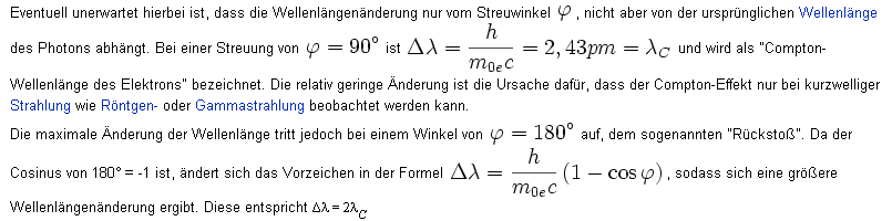 Resonanzlänge=Comptonwellenlänge mal Kernladungszahl mal Zwei hoch N.Jetzt wegen der Frage, wie eigentlich die Rotverschiebung im Ätherweltbild erklärt werden könnte, habe ich mir endlich nochmal genau den Comptoneffekt angesehen auf http://de.wikipedia.org/wiki/Comptoneffekt