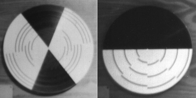Im Berliner Museum für Technik gibt es eine Optikabteilung, in der 2 Drehscheiben (Durchmesser 40cm) zu sehen sind, die je aus einem Schwarz-Weiß-Muster bestehen (Bild oben).