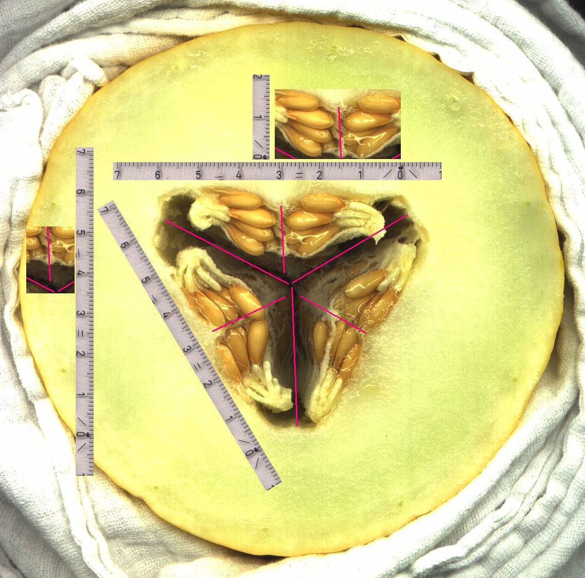Bild: Honigmelone Gesamt-Länge 166 mm, Durchmesser 132 mm