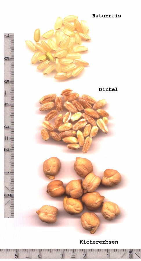 Kommentar: Farbe sehr dunkelgrün, wie braun10. Dinkel, schnell kochend 200 Stck. 6.7 ml --> 6.7/200= 0.034 ml