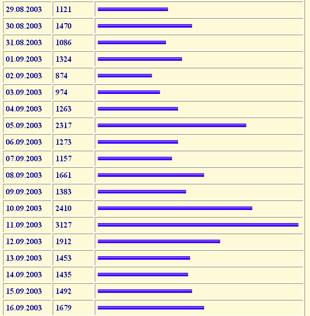 Forenstatistik [ Zauberspiegel Wissenschaft Ideenfabrik ] Geschrieben von Fee am 17. September 2003 08:15:28: Hier mal der aktuelle Stand der Pageviews: Eue Fee Antworten: Re: Forenstatistik Fee 24.9.2003 07:39 (0) [ Zauberspiegel Wissenschaft Ideenfabrik ]