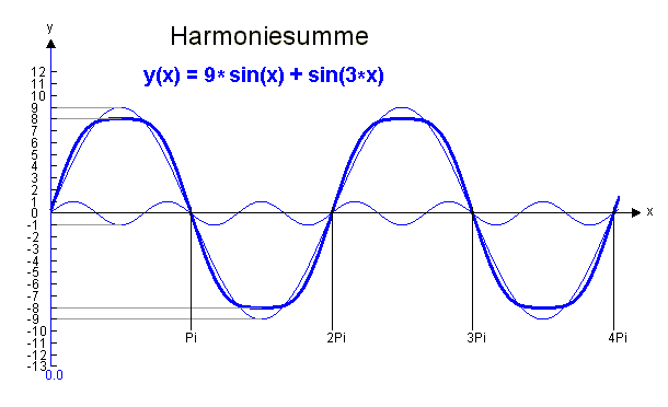 Amplitude Neun mit Frequenz Eins gibt den passenden Wert zum Ausschlag der Amplitude Eins und Frequenz Drei.
