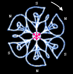 >Nur die Symmetrie zwischen Nordpol und Südpol gefällt mir noch nicht, aber das bewirkt wohl die Drehung. In umgekehrter Drehung würde das Bild anders aussehen (spiegelbildlich). Da muß also in den Früchten ein festes Drehfeld drin sein !