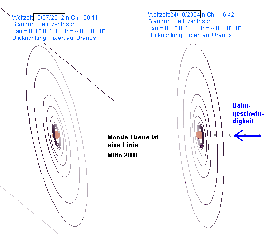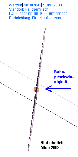 >Der Uranus rollt tatsächlich in seiner Jahresebene wie ein Fußball, aber ich nehme stark an, mit raumfester Achse, so daß beide Pole je einmal pro Uranusjahr zur Sonne zeigen.